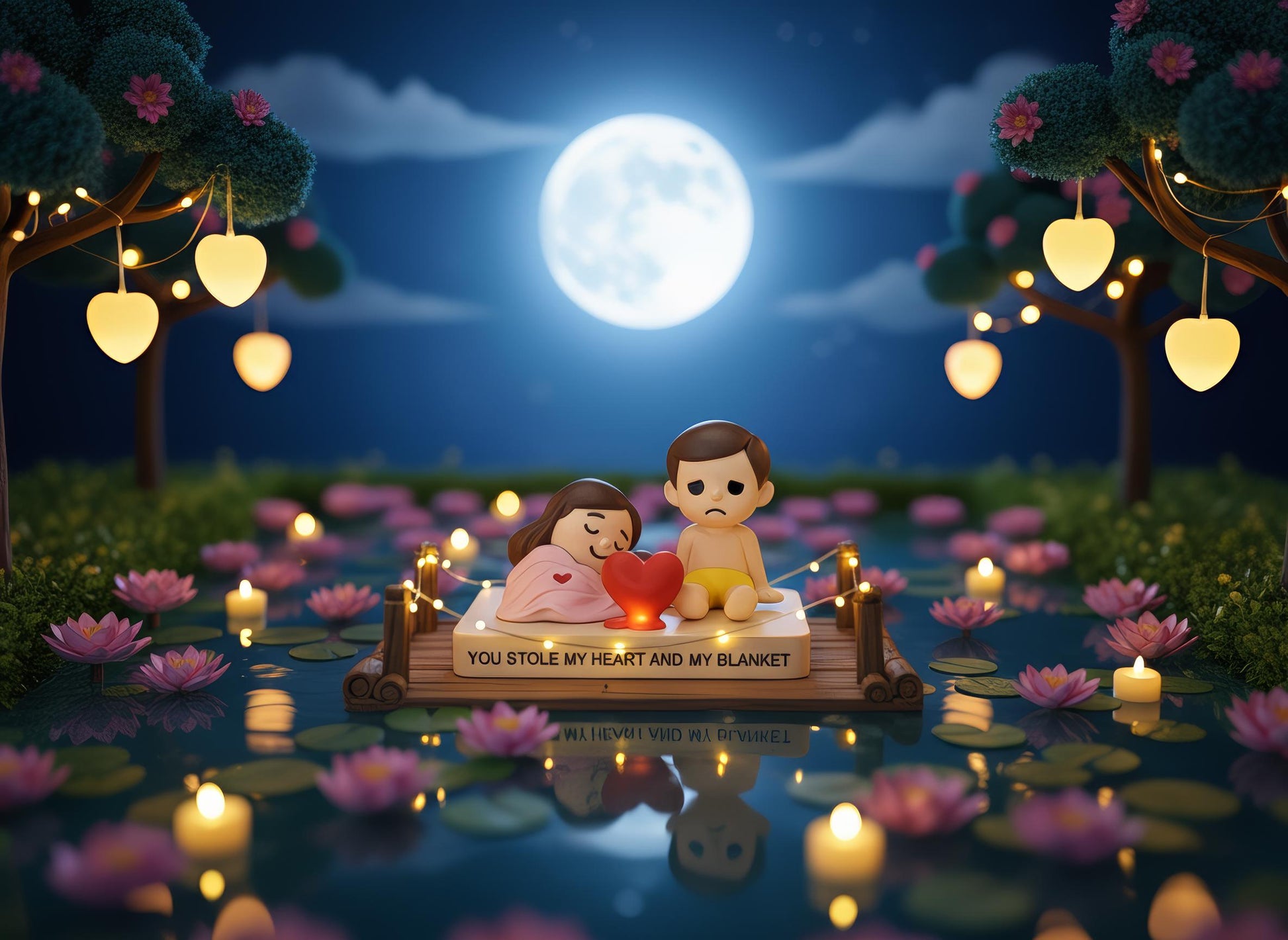 Schattig Bed Beeldje voor Koppels, Samen Slapen Onder één Deken, Grappig Liefdescadeau